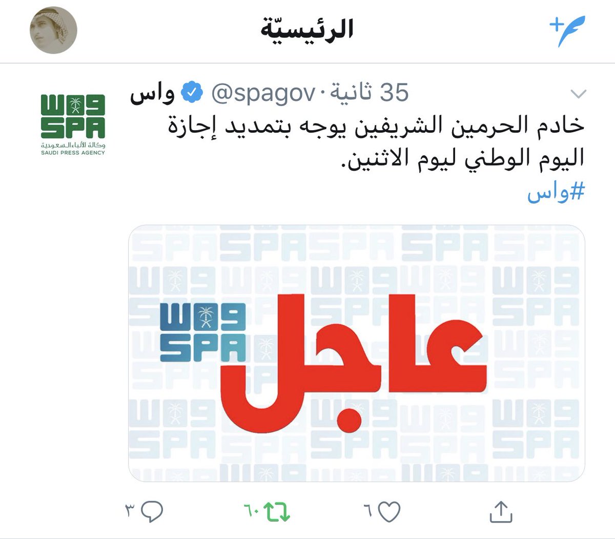 تم تمديد الإجازة أكدت صحيفة سبق ما جاء على صفحة وكالة تعليق الدراسة ونشرت خبر رسميا يفيد تمديد إجازة اليوم الوطني 1441 ليوم الثلاثاء وأعرب المواطنين عن شكرهم بخصوص استجابة السلطات السعودية لمطالبتهم.